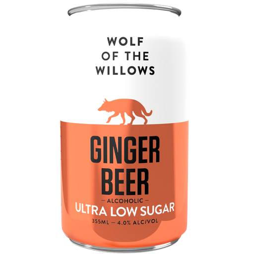 Wolf Of The Willows Ginger Beer Cans 355ml – Pack of 24 features a craft-brewed, Australian alcoholic ginger beer with 4.0% ABV, made from real ginger for an authentic, zesty taste. It is ultra low sugar, with less than 0.1g sugar per 100ml, offering a semi-dry body, gentle "ginger tickle" on the back palate, and a crisp finish ideal for those seeking a refreshing alternative to sweeter ginger beers