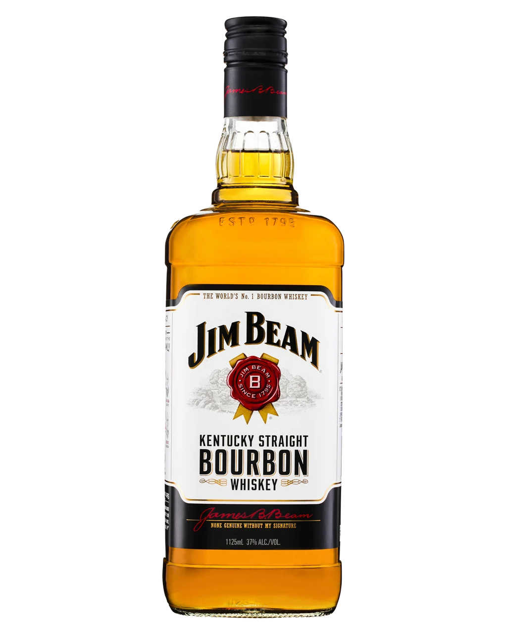 Jim Beam White Bourbon 1125ml is a classic Kentucky Straight Bourbon Whiskey with 40% ABV, presented in a larger 1.125-liter bottle. It has been crafted since 1795, aged for at least four years in new charred oak barrels, and is known for its smooth, mellow taste with rich notes of caramel, vanilla, oak, and a hint of spice. The bourbon offers a medium body with balanced flavors, making it perfect for sipping neat, on the rocks, or as a base for cocktails. This size is ideal for celebrations or as a gift, maintaining the iconic heritage and quality of Jim Beam