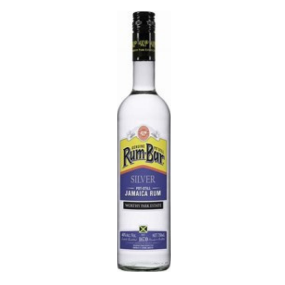 Rum-Bar Silver 700ml is a premium Jamaican white rum distilled 100% in pot stills at Worthy Park. It offers rich tropical aromas with dominant banana and subtle citrus notes. The unaged rum is smooth, fruity, and buttery, making it ideal for cocktails or mixing in classic drinks.