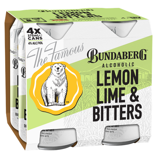 Bundaberg Alcoholic Lemon Lime Bitters 375ml combines fresh lemon and lime with local Queensland cane spirit and aromatic bitters. It delivers a perfectly balanced, refreshing citrus flavour kick. With 4% ABV and approximately 1.2 standard drinks per can, this premixed beverage offers the iconic Aussie taste in a convenient format