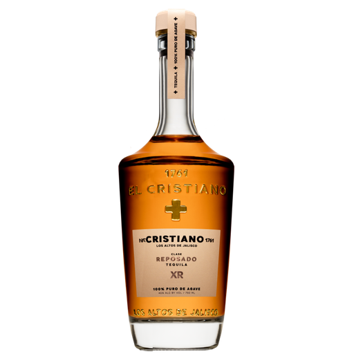 El Cristiano XR Reposado Tequila 750ml is a premium, additive-free tequila crafted from 100% Blue Weber agave grown in the Jalisco Highlands. It is distinguished by a unique "extra rested" aging process: the tequila spends 5.5 months in ex-bourbon American oak (often ex-Jack Daniels) barrels, then an additional 5.5 months in French Bordeaux red wine barrels, for a total of 11 months of barrel aging. This dual-barrel maturation gives it exceptional complexity and a layered, refined flavour profile