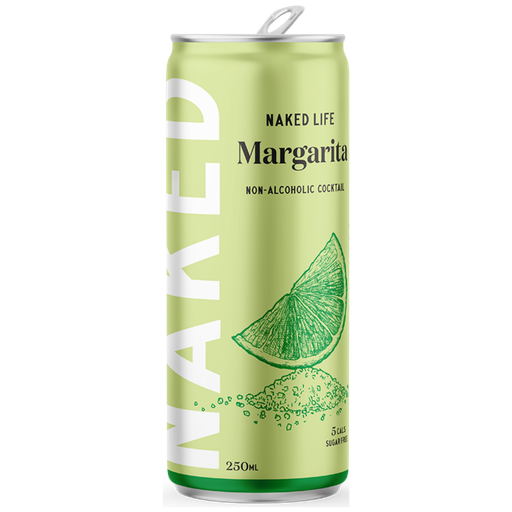Naked Life Non Alcoholic Margarita 250ml—Pack of 24 offers a zesty, sugar-free mocktail with Tahitian lime, Murray River pink salt, and distilled botanicals. It delivers a salty-citrus Margarita experience without alcohol—vegan, low-calorie, made in Australia, perfect for guilt-free celebrations