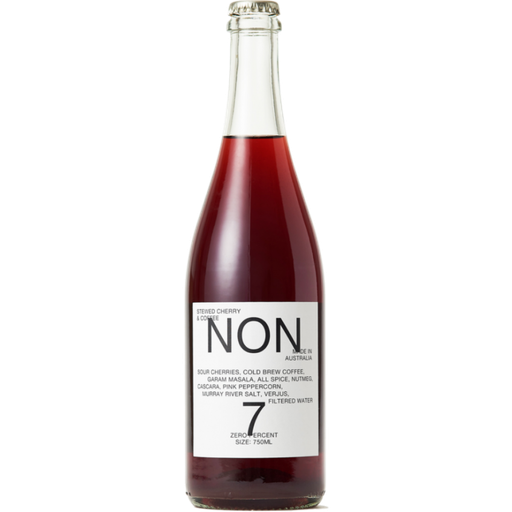 NON 7 Stewed Cherry & Coffee 750ml is a lightly sparkling, alcohol-free wine alternative from Australia, blending rich stewed cherries, cold brew coffee, and warm spices for a complex, sophisticated experience.