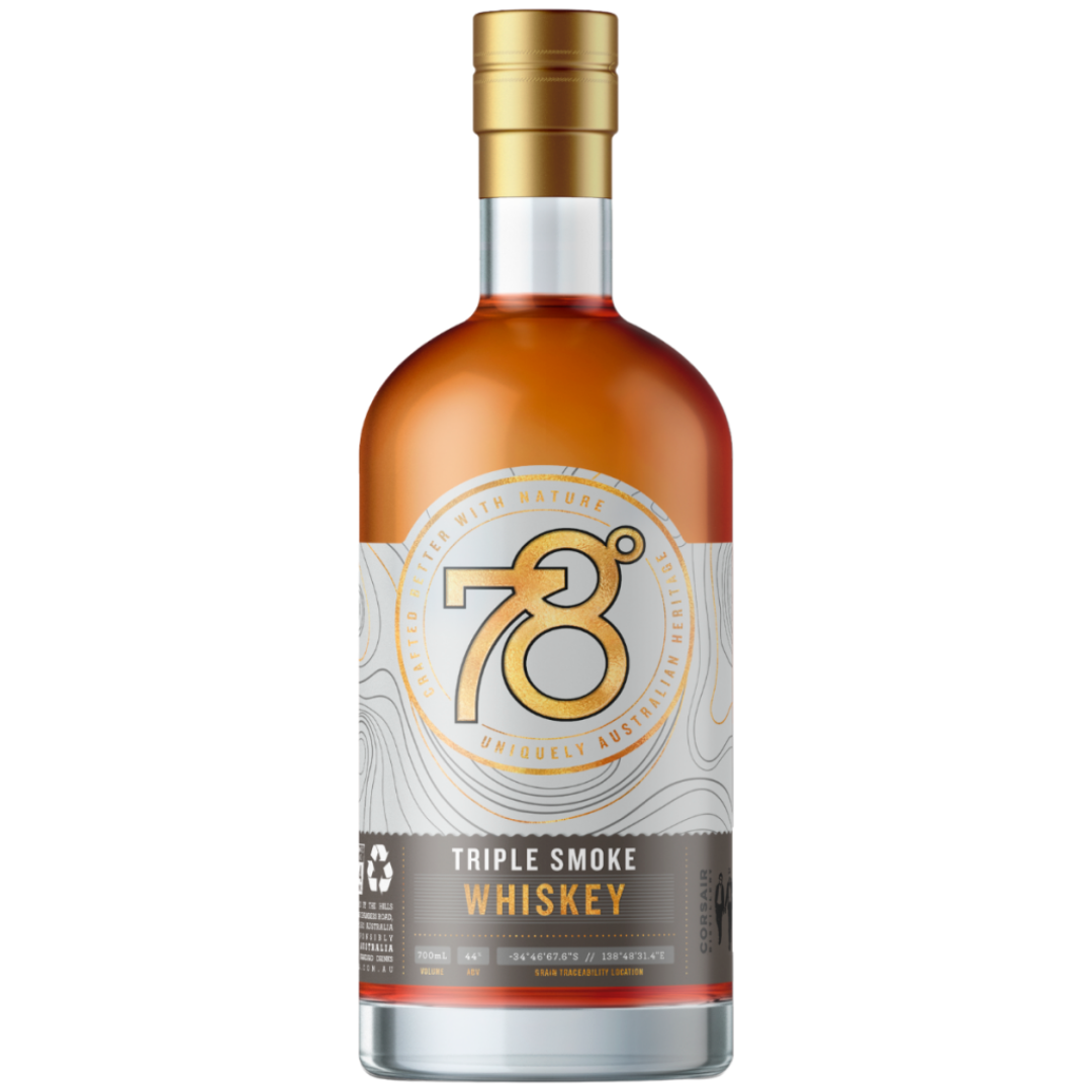 78 Degrees Triple Smoke Whisky is bold and smoky, with dark chocolate, dried fruit, sweet oak, and subtle spice—pure South Aussie craft