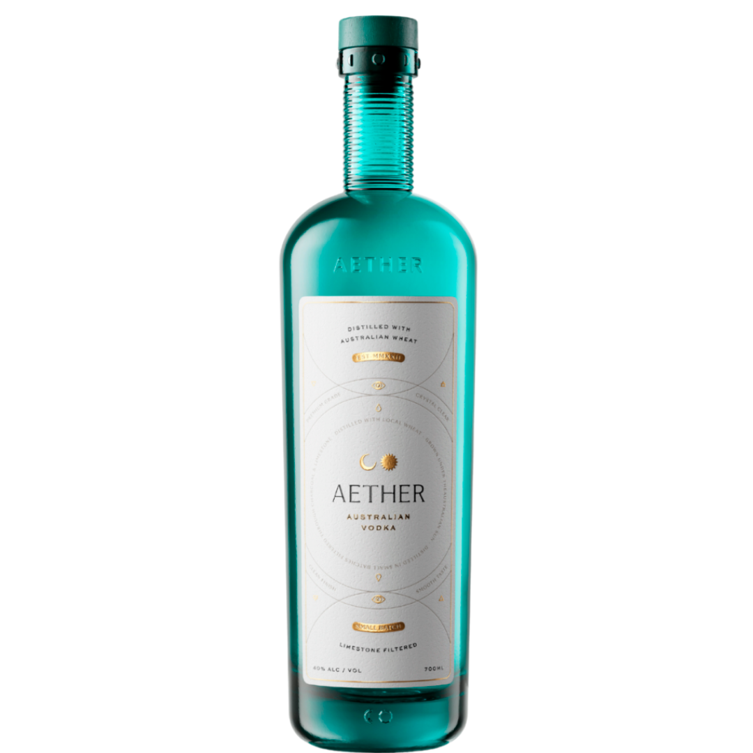 Aether Australian Vodka 700ml is filtered through coconut husk charcoal and local raw limestone to enhance minerality. It is cut with high-pH alkaline water, resulting in a clean, smooth vodka with delicate wheat aroma, subtle citrus, light spice, and a velvety mouthfeel. Bottled at 40% alc/vol.