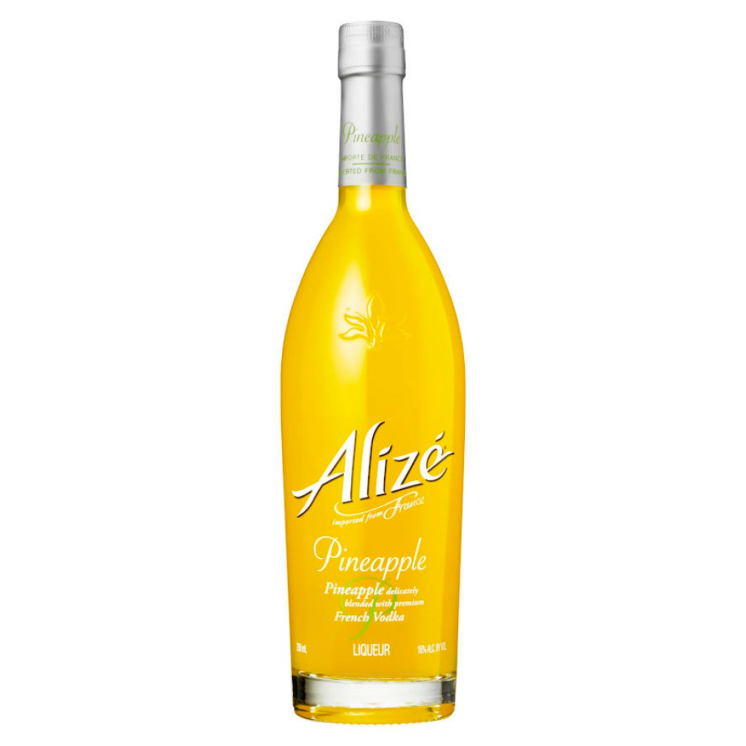 Alize Pineapple Cognac Liqueur 750ml is a tropical-flavored liqueur blending premium French vodka, natural pineapple juice, and passion fruit with a smooth, velvety texture. It is bottled at 20% ABV and features the vibrant, sweet, and tangy taste of ripe pineapples and tropical citrus