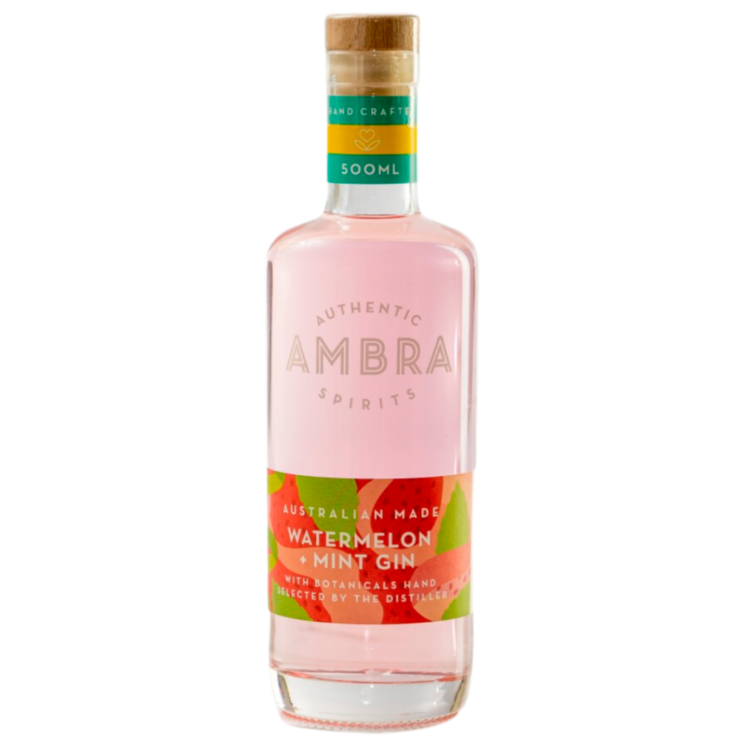 Ambra Watermelon Mint Gin 500ml is a small-batch Australian gin with 40% ABV. It features a classic London dry botanical profile with juniper, coriander, cardamom, and citrus notes, complemented by refreshing watermelon and mint flavors. Ideal for a unique, refreshing gin and tonic experience.