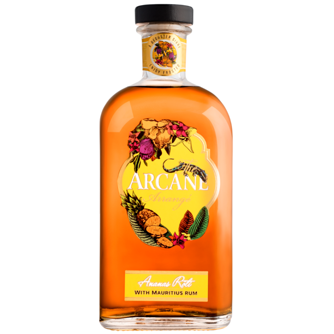 Arcane Roasted Pineapple Rum 40% 700ml is a unique rum from Mauritius, infused with roasted pineapple flavors. It balances sweet, tangy, and pastry notes, perfect for sipping or cocktails.