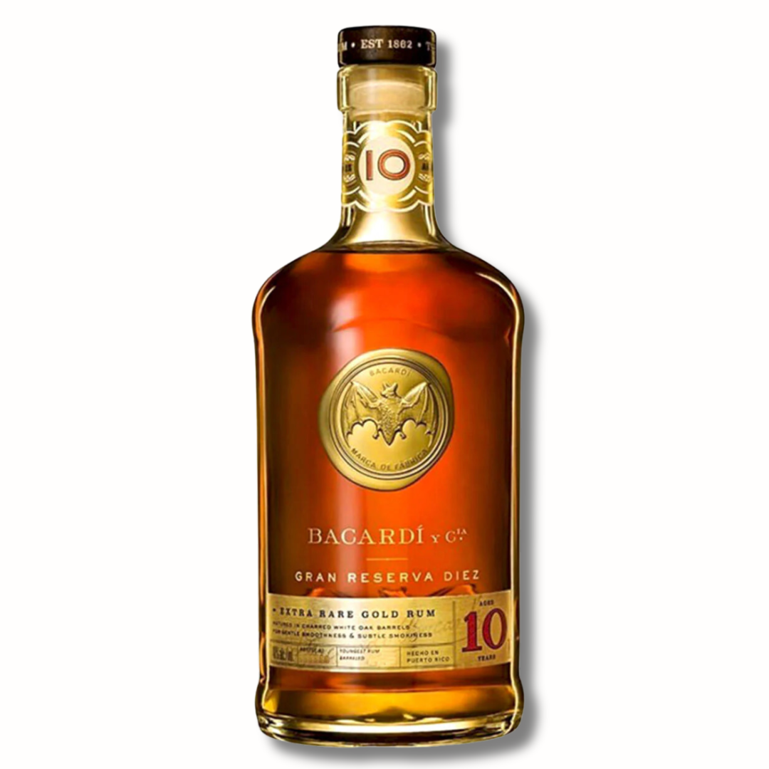 Bacardi Gran Reserva Extra Rare 10 Year Old Gold Rum 1L is a premium rum from Puerto Rico, expertly blended and barrel-aged for at least ten years under the Caribbean sun. It features rich, complex flavors with notes of caramel, oak, tropical fruits, vanilla, and a smooth finish, ideal for sipping or cocktails.