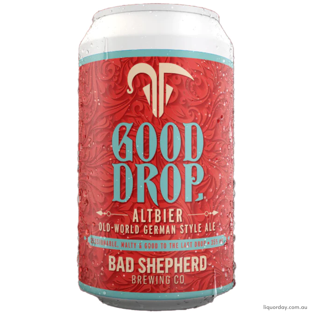 Bad Shepherd Good Drop Altbier 355ml - Pack of 16 is a traditional German-style Altbier beer crafted by Bad Shepherd Brewing Co in Victoria, Australia. This craft beer is malt-driven, popularized in the Düsseldorf region of Germany, and is known for its bready Munich malt flavors and a pleasant, dry finish. It has an alcohol content of 5.0% ABV and is packaged in convenient 355ml cans. The beer was inspired by Brett Tyrrell's award-winning homebrew winning an Oktoberfest competition in 2022. Its rich malt character and balanced bitterness make it a distinctive choice for craft beer lovers