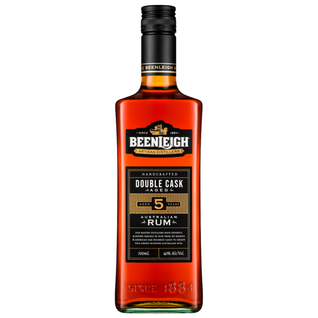 Beenleigh Double Cask Rum 700ml is a rich, full-bodied Australian rum aged for five years. It is a blend of five expertly selected aged rums matured in historic kauri pine vats, Australian brandy vats, and ex-bourbon barrels. The rum offers smooth caramel and spiced oak flavors with notes of molasses, breakfast fruit toast, dried coconut, vanilla bean, and hints of banana confectionery and dates. Bottled at 40% ABV, it delivers a creamy entry and a long, flavorful finish, making it a delightful choice for sipping or mixing in cocktails.