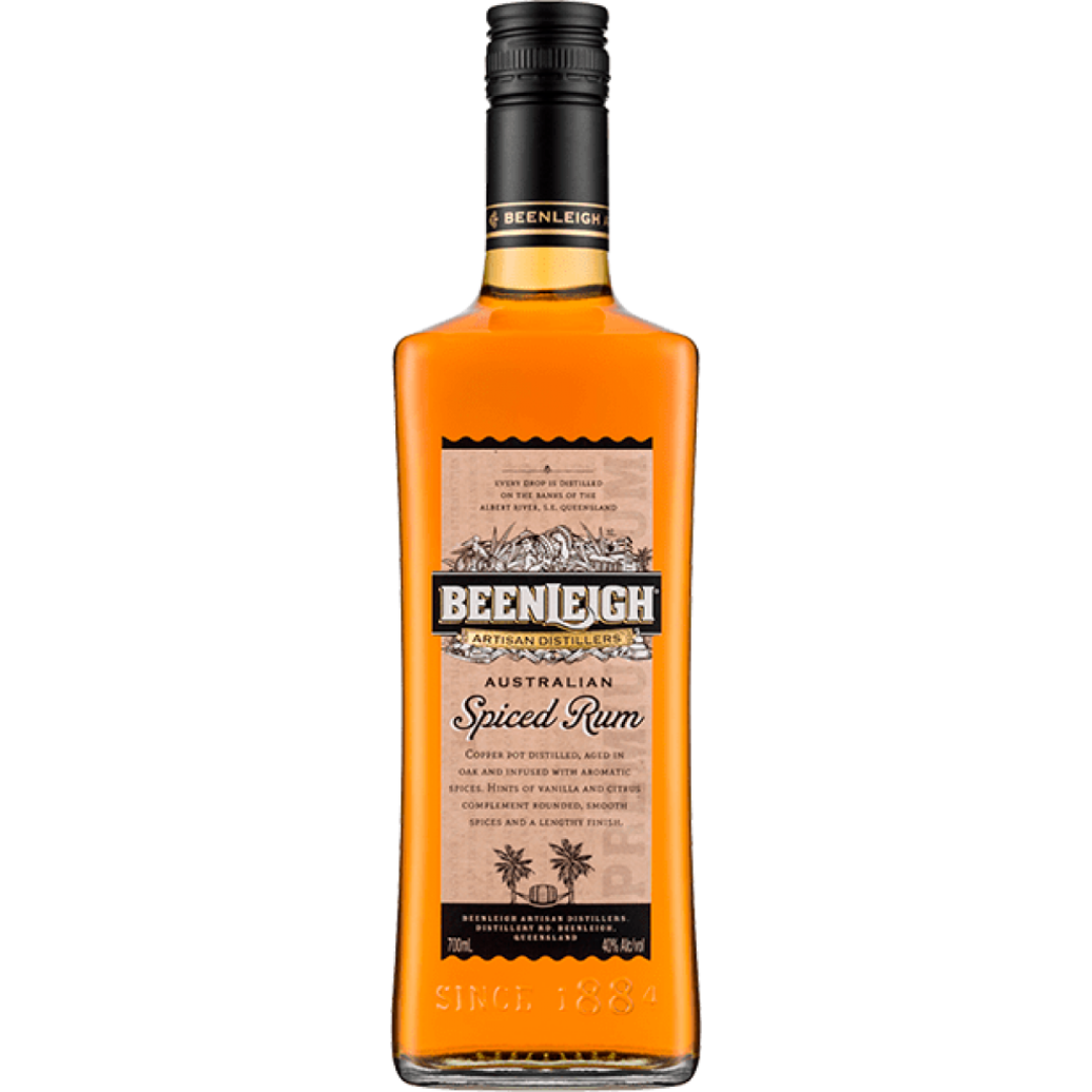 Beenleigh Spiced Rum 700ml is an Australian spiced rum that has been copper pot distilled and slowly mellowed in ex-brandy vats. It is infused with aromatic spices including vanilla, cinnamon, clove, and nutmeg, delivering a warming flavor with a slow and thoughtful finish. Bottled at 40% ABV, it offers hints of brown sugar and citrus on the nose, balanced on the palate with sweet spices and a lingering finish. It pairs well with ginger beer and lime, or can be enjoyed neat or on the rocks.