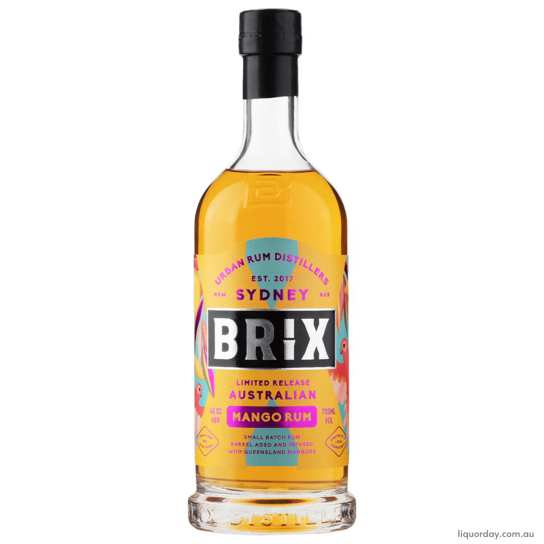 Brix Mango Rum 700ml is an Australian dark rum infused with fresh Kensington Pride mangoes, aged in red wine casks, offering tropical sweetness, vanilla, honey, peach aromas, and rich, bold flavors.