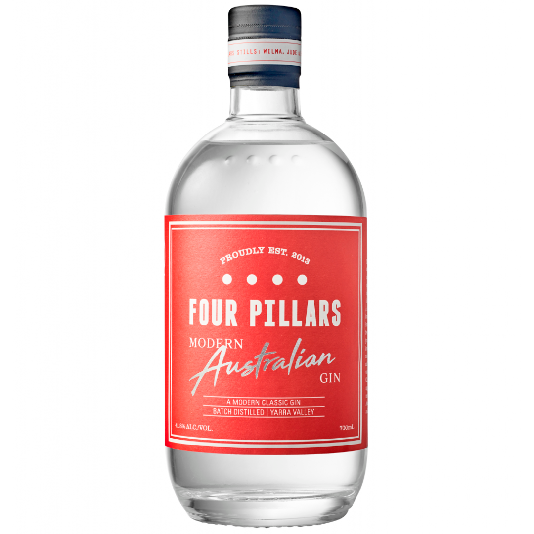 Four Pillars Modern Australian Gin 700mL is a bright and dry Australian gin featuring native and Asian botanicals like Szechuan pepper, lemon myrtle, macadamia nuts, and quandong for a spicy, fruity flavor.