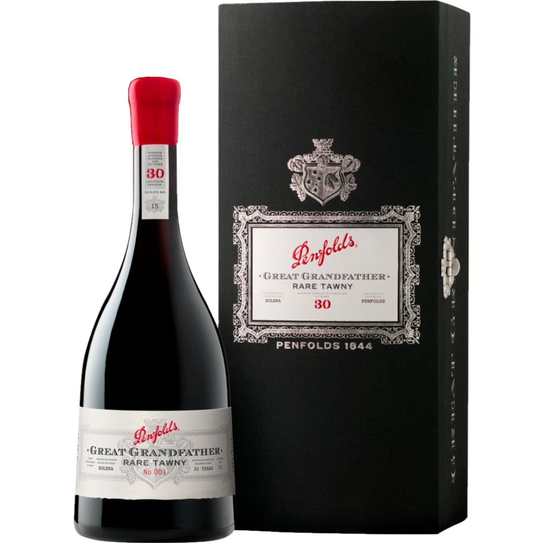 Penfolds Great Grandfather Rare Tawny Naked Giftbox 750mL is a premium Australian Tawny Port with 19.6% ABV, aged over 30 years in a solera system, featuring rich, complex aromas and flavors of raisined fruit, toffee, dark chocolate, coffee, and orange zest.
