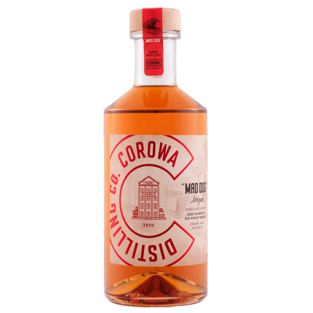 Corowa Distilling Mad Dog Morgan 500ml is a unique Australian single malt whisky aged in American oak ex-Muscat casks. It has 46% ABV with aromas of cinnamon, ginger, honey, and orange. The palate features oak, spice, burnt caramel, and raisins, finishing long and sweet with a hint of vanilla. This whisky is inspired by the notorious bushranger Dan “Mad Dog” Morgan, reflecting boldness and character.