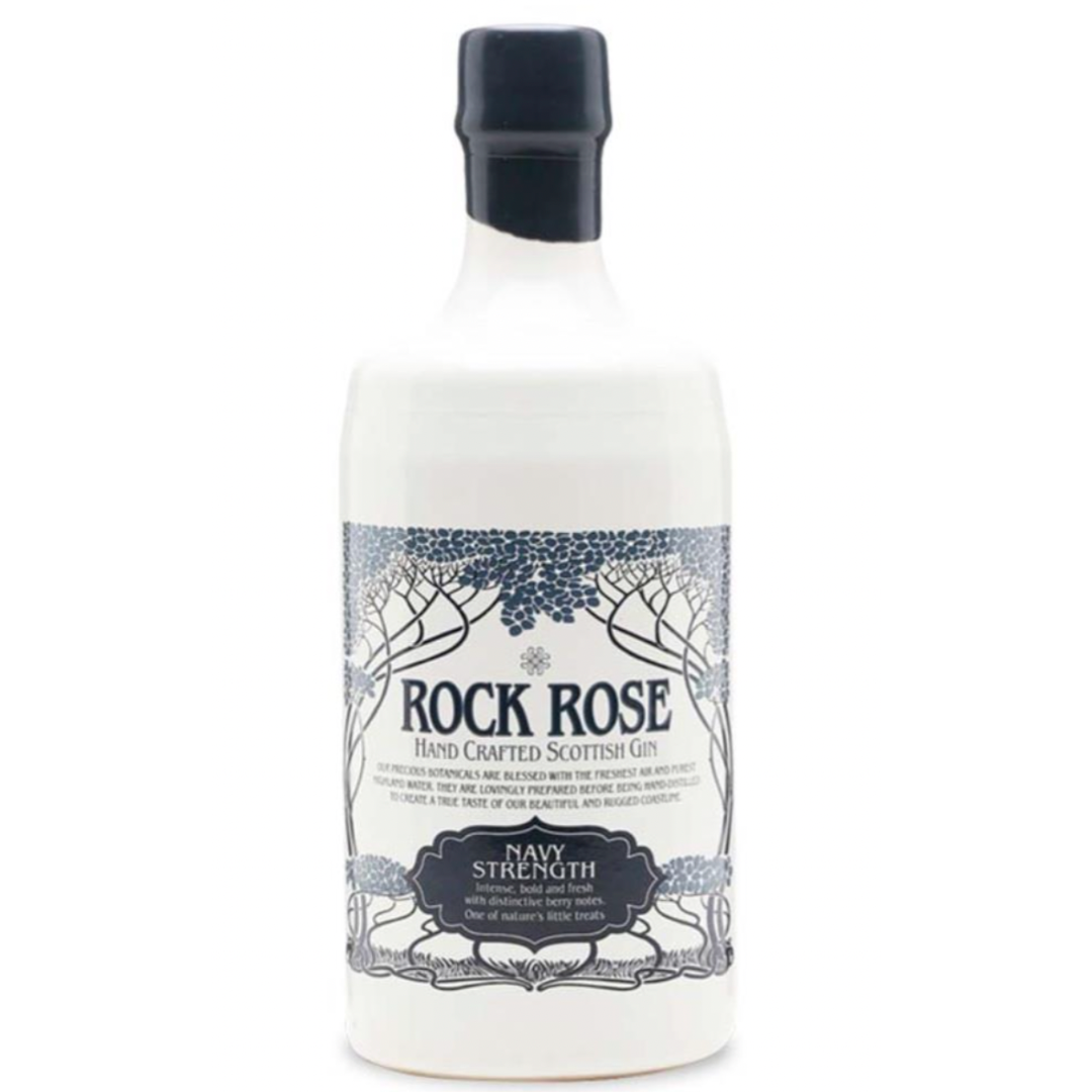 Dunnet Bay Distillery Rock Rose Navy Strength Gin 57% ABV, 700ml, is a bold Scottish gin with strong pine and lemon sherbet notes. It features intense berry flavors from blaeberries, rowan, and hawthorn, balanced by earthy angelica and orris root. Smooth for its strength, it's ideal neat, on ice, or in a Negroni