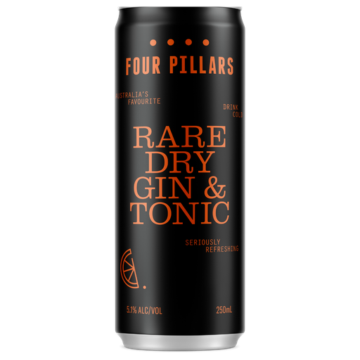 Four Pillars Rare Dry Gin & Tonic 250ml combines Four Pillars' acclaimed Rare Dry Gin with a bespoke tonic in a ready-to-drink can, each containing 5.1% ABV and 250ml—perfect for premium convenience. The pack of 24 offers a top-quality G&T experience for gatherings or stocking up with Australia's best-selling craft gin in RTD format.