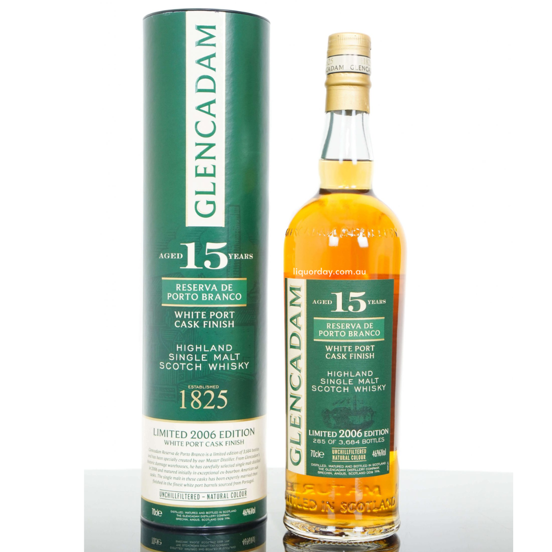 Glencadam Aged 15 Years Reserva De Porto Branco Highland Single Malt Scotch Whisky 700ml: Floral nose with red berries, raspberry jam, rose water; palate of summer berries, baked apple, custard tarts, white pepper; smooth, elegant finish