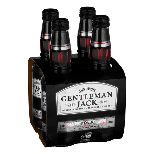 Jack Daniels Gentleman Jack & Cola 330ml (Pack of 24) is a premixed ready-to-drink beverage blending the smooth, charcoal-mellowed Gentleman Jack Tennessee whiskey with cola. It is bottled at 6% ABV and offers 1.6 standard drinks per serve.