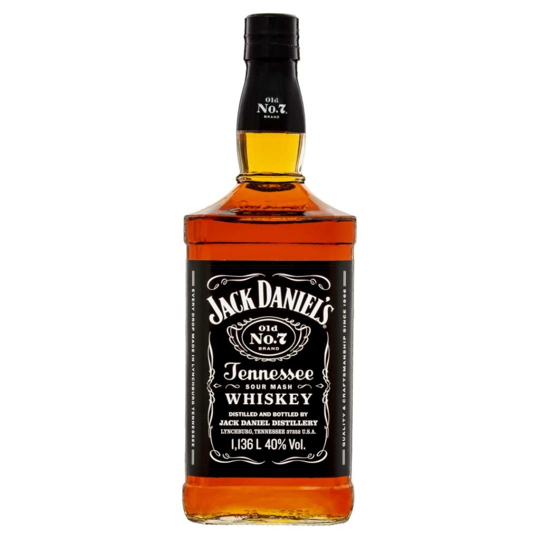Jack Daniel's Tennessee Whiskey 1.136L is a large-format bottle of the iconic American whiskey, known for its smooth character and distinctive flavor profile derived from charcoal mellowing (the Lincoln County Process) and maturation in new American oak barrels.