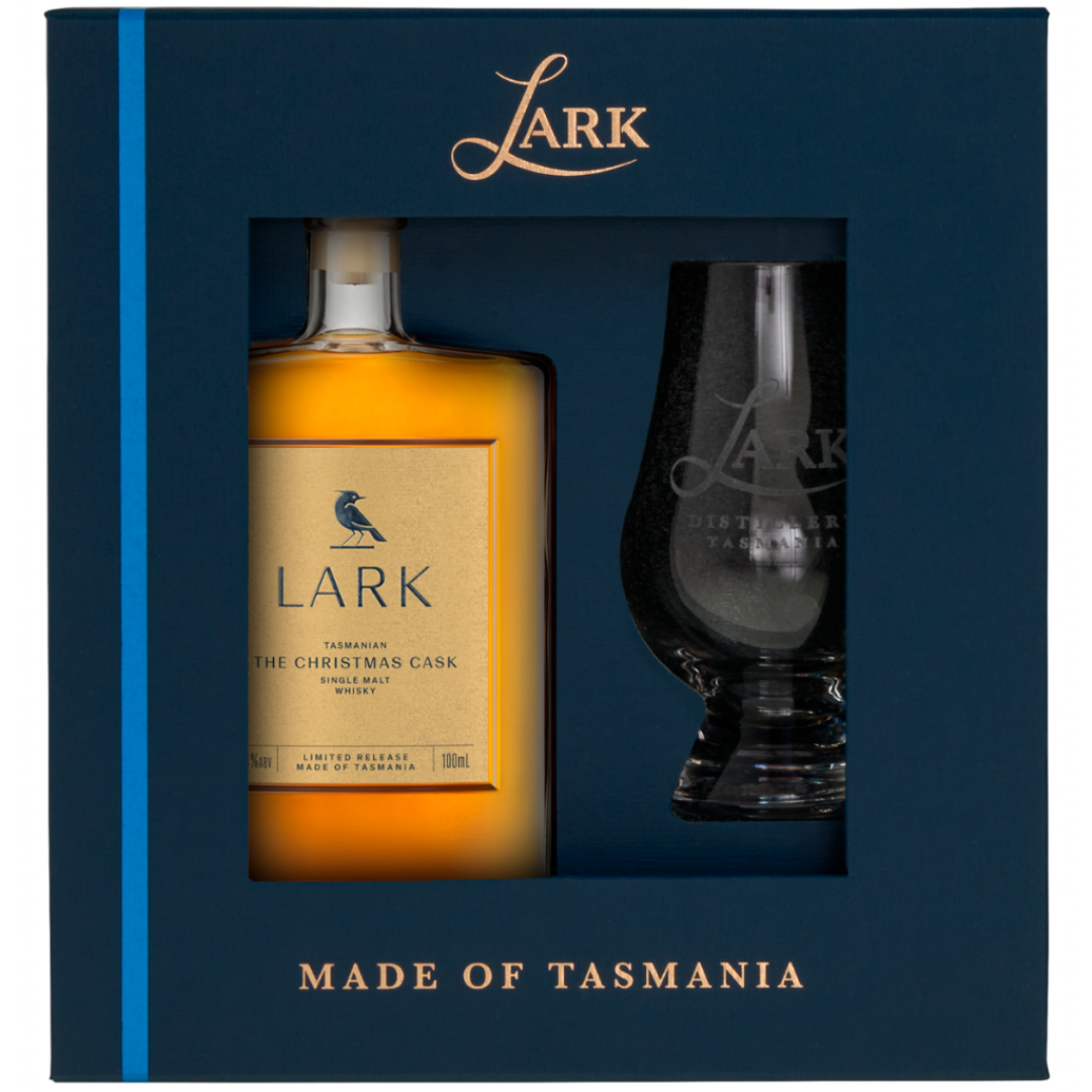 Lark Distillery Christmas Cask With Glencairn Glass Giftbox 100ml is a special festive release from the Tasmanian Lark Distillery, presented with a branded Glencairn whisky tasting glass in a gift box. This single malt whisky is designed to evoke the warm, cozy flavors and aromas of the holiday season.