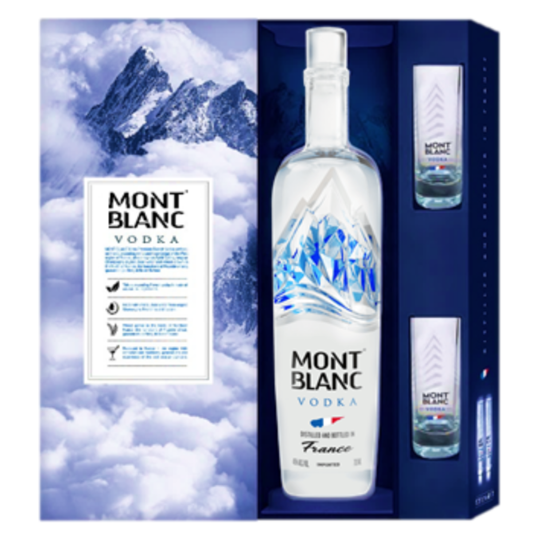 Mont Blanc Premium French Vodka & 2 Glasses Gift Pack 700ml