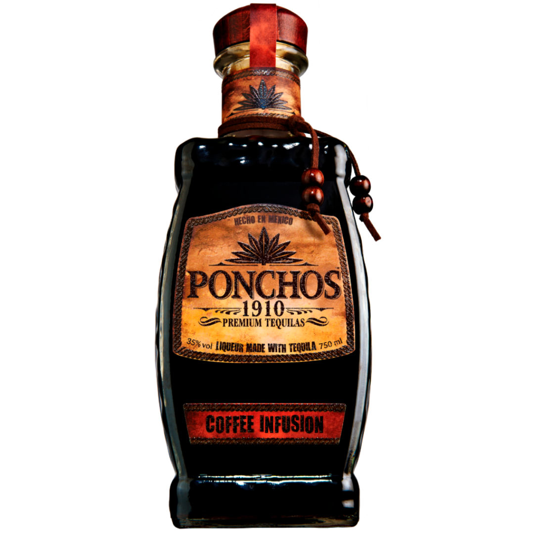 Ponchos Coffee Tequila 750ml is a premium Mexican tequila liqueur infused with handpicked Mexican coffee beans, offering a bold and smooth fusion of coffee richness and tequila warmth. It is delicately crafted to showcase an artisanal balance, featuring a distinctively sweet yet well-rounded palate and finishing with notes of rich coffee, subtle cream, and extra-premium tequila. The bottle has a hand-crafted design with earthy tones and a wooden cork, reflecting its exclusive appeal