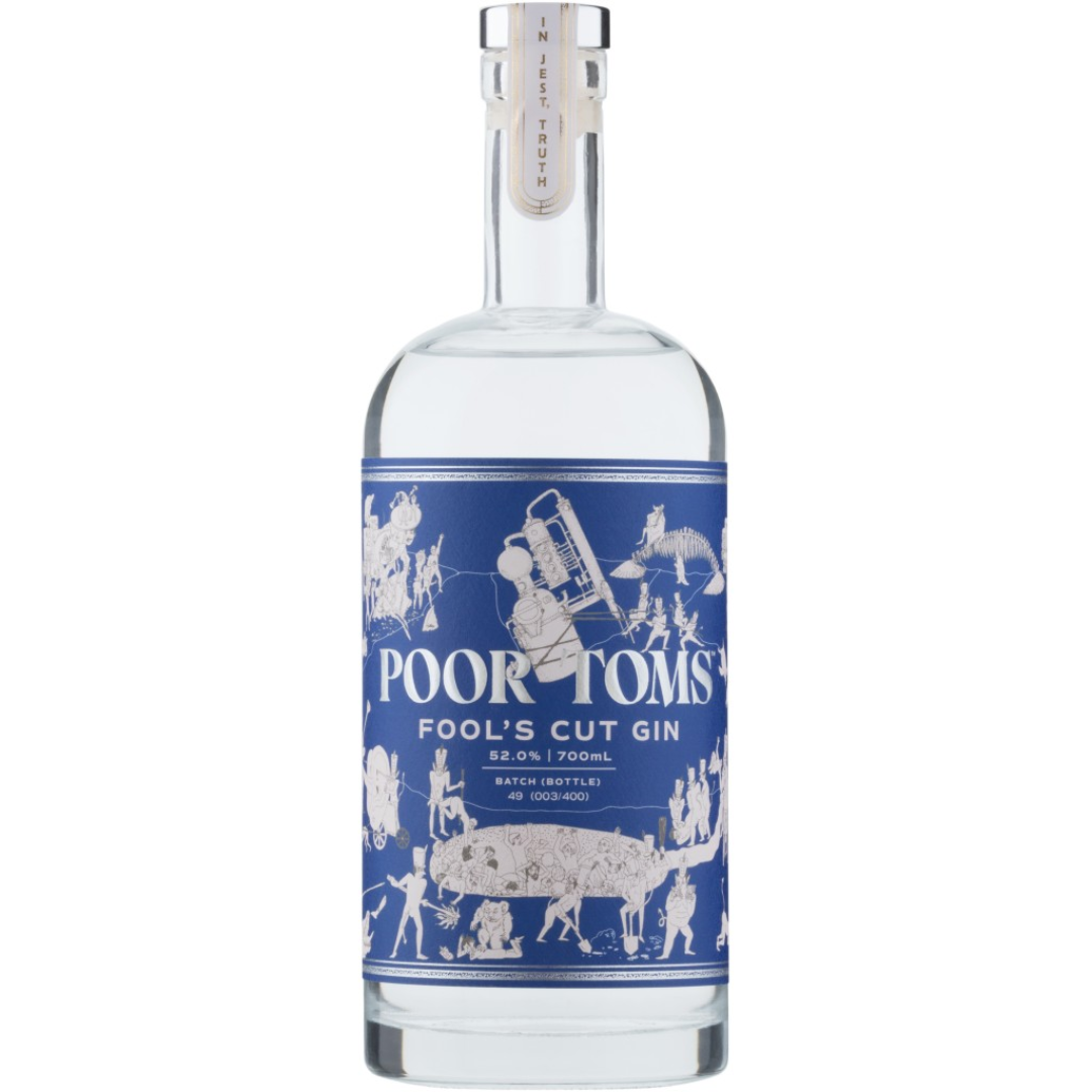 Poor Toms Fool's Cut Gin 700ml is a bold Australian gin with 52% ABV, featuring rich juniper, grapefruit aromas, and a long juniper-licorice finish. It uses 9 botanicals including juniper, coriander seed, cinnamon, angelica root, cardamom, liquorice root, cubeb pepper, chamomile, and grapefruit peel. Ideal for strong cocktails like ultra-dry martinis or classic G&Ts.