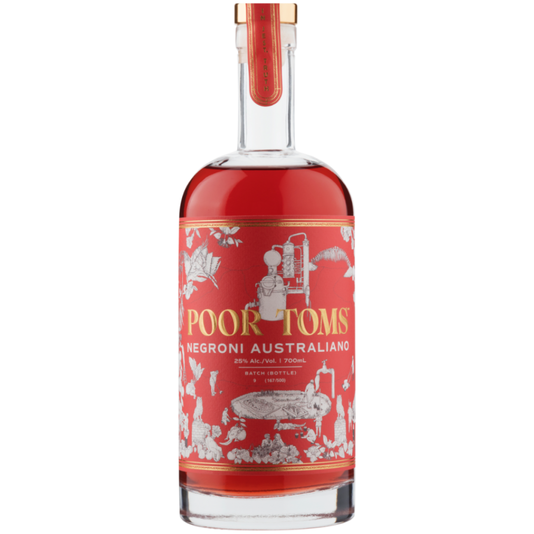 Poor Toms Negroni Australiano 700mL is a crafted Australian twist on the classic Negroni cocktail, using Poor Toms gin, Imbroglio amaro, and sweet vermouth. It combines 30ml each of Poor Toms Sydney Dry Gin, Poor Toms Imbroglio, and sweet vermouth, stirred with ice and garnished with orange peel for a vibrant, balanced, and bittersweet profile