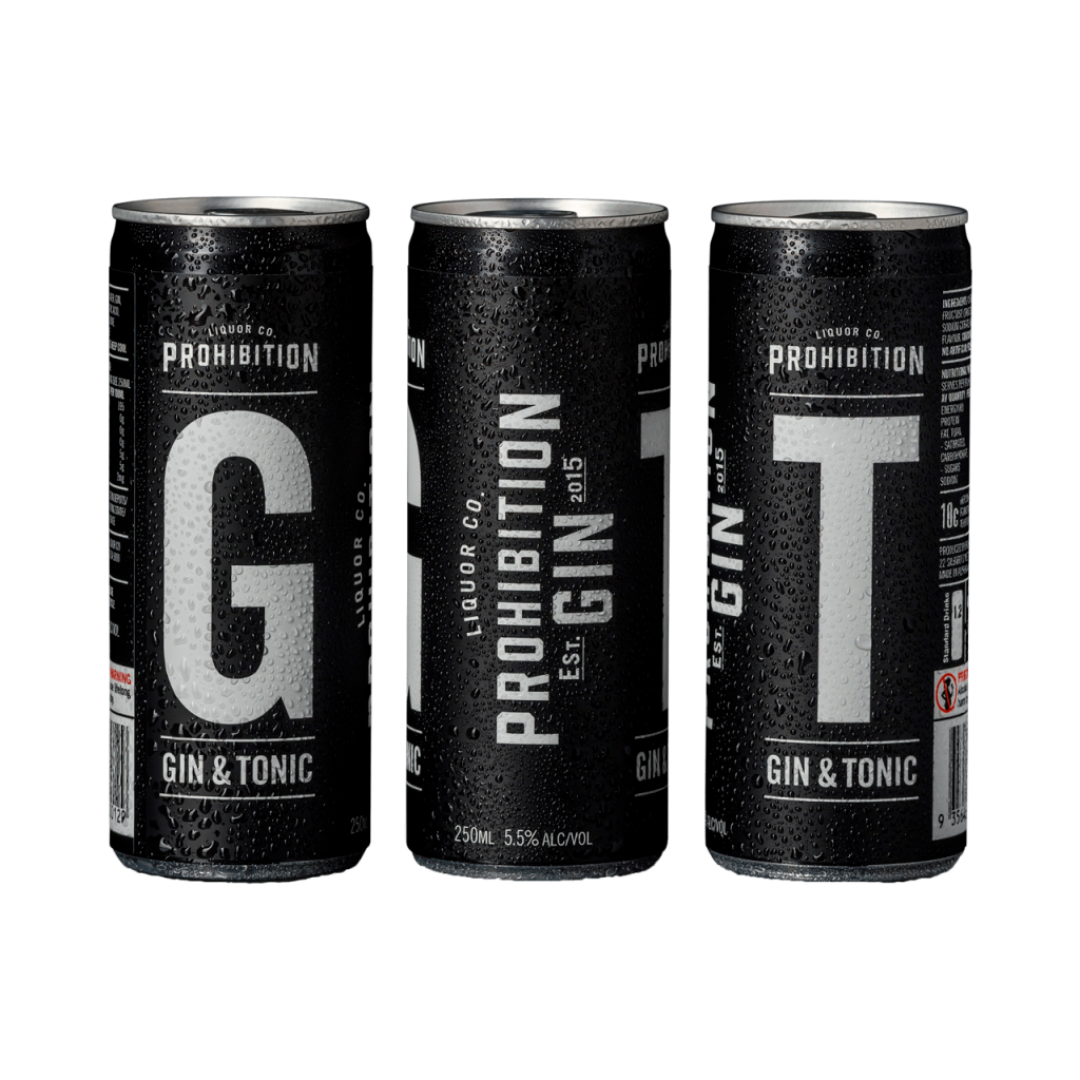 Prohibition Liquor Co. Gin & Tonic Cans 250mL 24 Pack