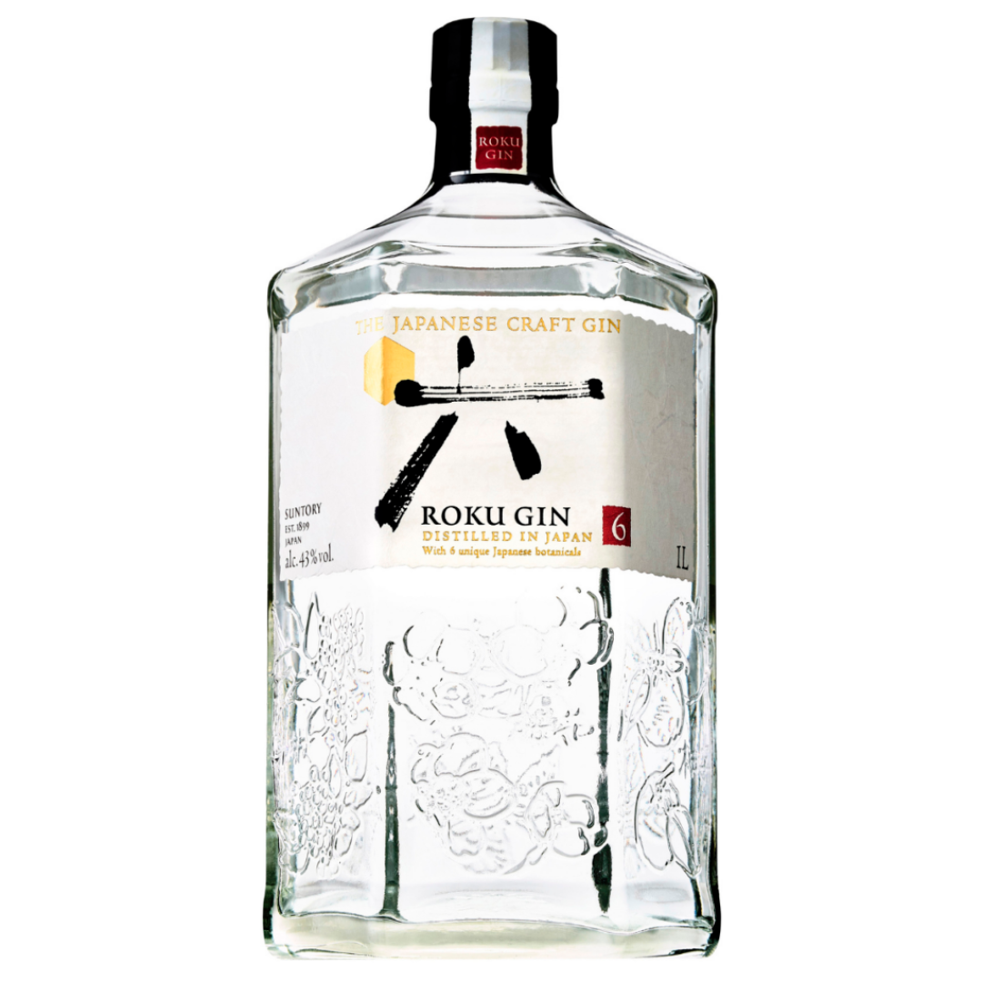 Roku Gin 1L is a premium Japanese craft gin with 43% ABV, made from six unique botanicals harvested at peak freshness in Japan. It delivers floral aromas of cherry blossom and green tea, with complex citrus and peppery spice notes for a balanced, smooth finish