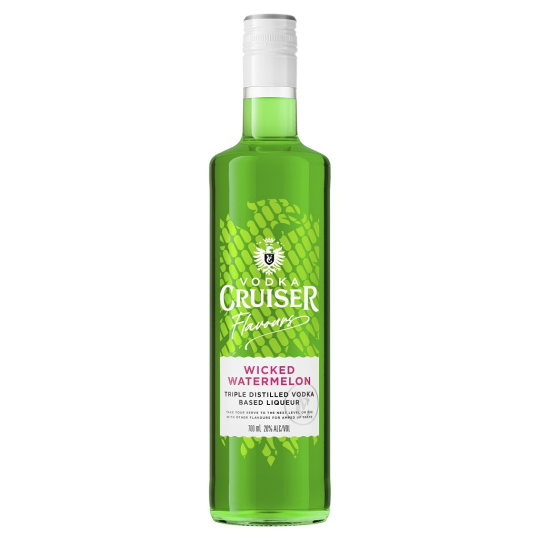 Vodka Cruiser Mid Proof Watermelon 700ml is a premium triple distilled vodka-based liqueur with a sweet, delicious watermelon flavor. It has a lower alcohol content of around 20% ABV, making it a lighter, refreshing option ideal for casual sipping or mixed drinks.