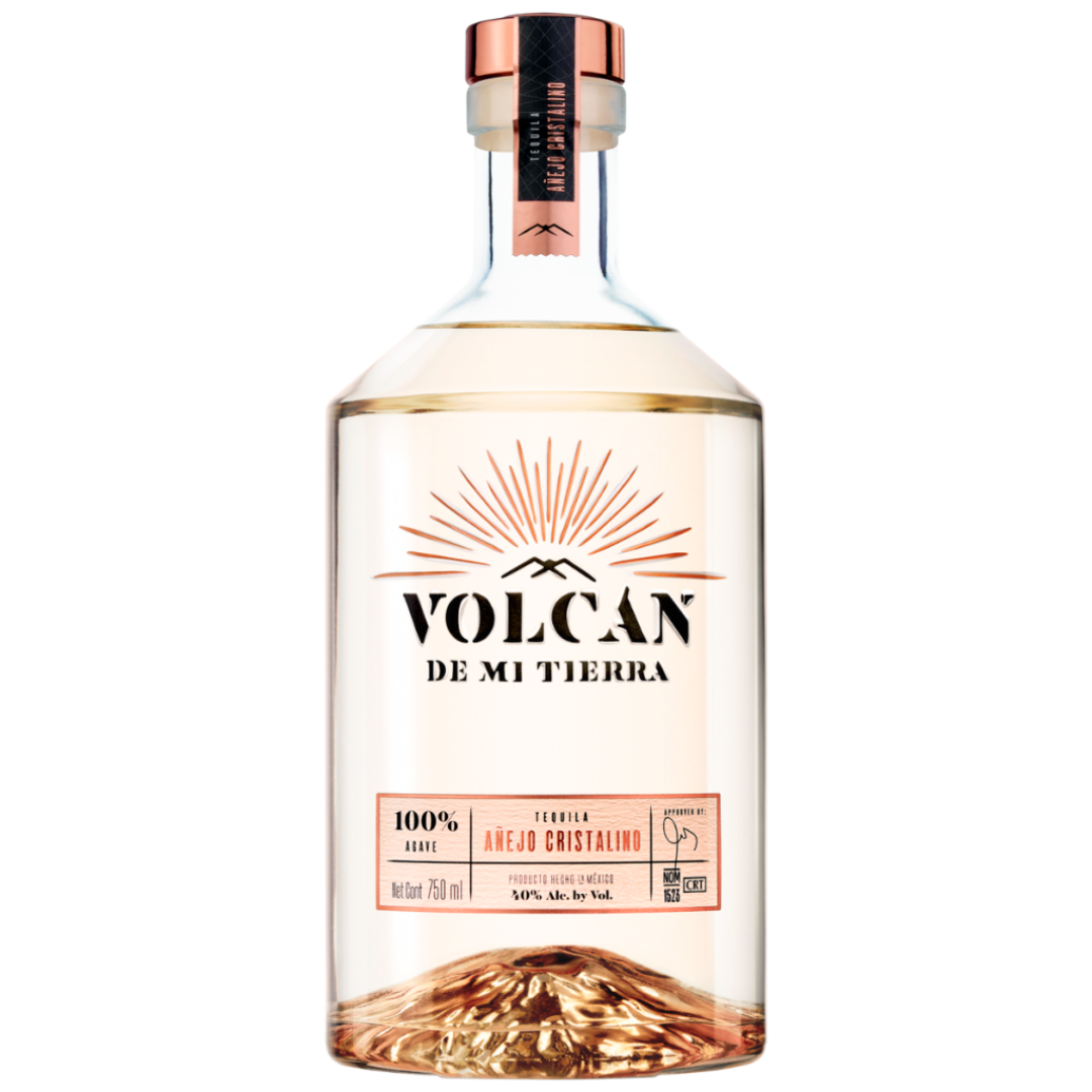 Volcan de mi Tierra Añejo Cristalino Tequila 700mL is a luxury tequila crafted from 100% Blue Weber agave sourced from both the Highlands (Los Altos) and Lowlands (El Valle) of Jalisco, Mexico. It is a blend of añejo tequila (aged a minimum of one year in American oak) and extra-añejo tequila (aged up to three years in French oak or cognac barrels). The Cristalino style is achieved by charcoal filtration, which removes color and some heavier wood notes, resulting in a crystal-clear spirit that maintains the depth and complexity of aged tequila