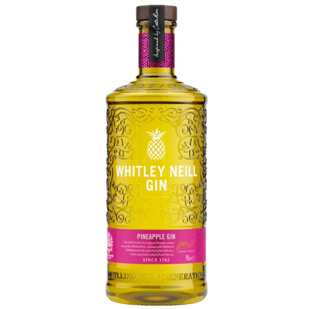 Whitley Neill Pineapple Gin 43% 700ml is a tropical gin with zesty Costa Rican pineapples, balanced with juniper, citrus, and spices. Fresh, vibrant, perfect for cocktails.